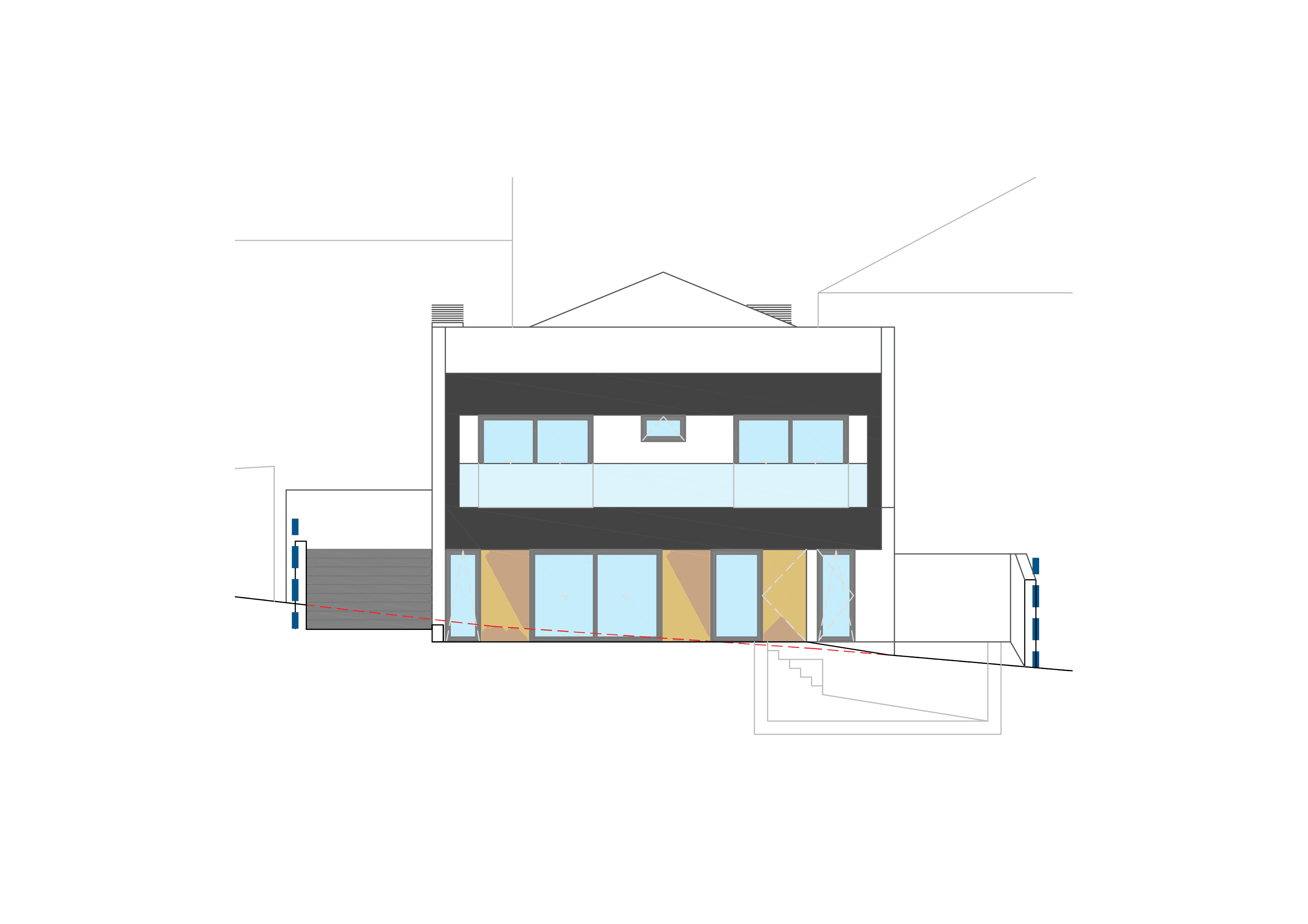 Moradia unifamiliar T3 em LSF composta por dois pisos, zonas de convívio, jardim e garagem subterrânea.