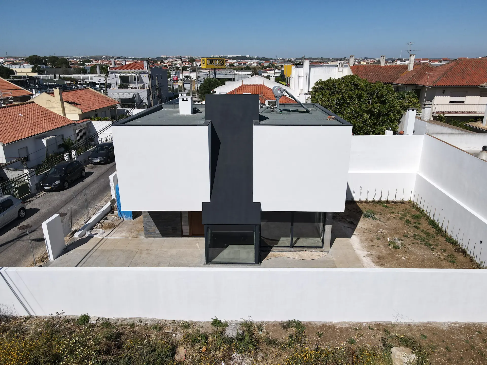 Construção de moradia raiz em LSF desenvolvida em dois pisos com duas casas de banho, sala de estar e cozinha ampla.